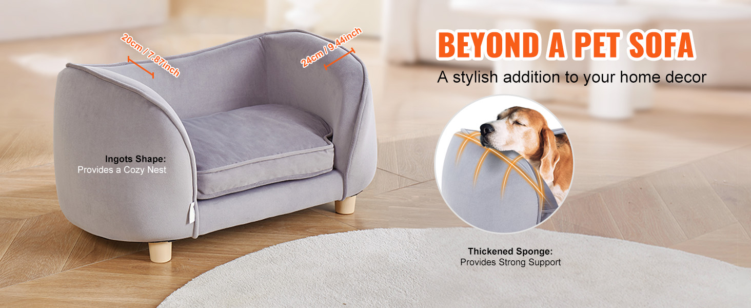 - High-Quality Materials: Featuring 11cm/4.33" thick sponge padding, the dog sofa bed supports pet joints, ensuring their health. The soft velvet surface is scratch-resistant, and easy to clean, providing pets with a comfortable resting place while reducing cleaning efforts.