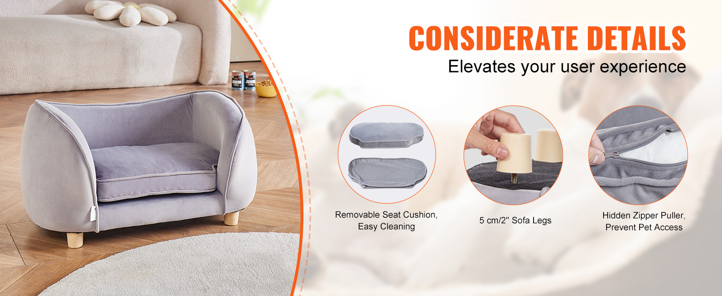- Peace of Mind Load-Bearing: With a robust capacity of 30 lbs, VEVOR dog sofa provides strong support for breeds like bulldogs or lively poodles, offering a secure retreat for your pets.